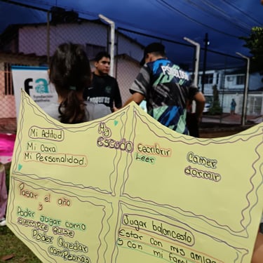 Objetivo: Impulsar el desarrollo integral de niños, niñas y adolescentes residentes en el Hogar San José, fortaleciendo sus capacidades emocionales, sociales y cognitivas mediante estrategias basadas en el arte, la recreación, el deporte y la educación para la paz, que fomenten el reconocimiento de su identidad, dignidad y derechos.